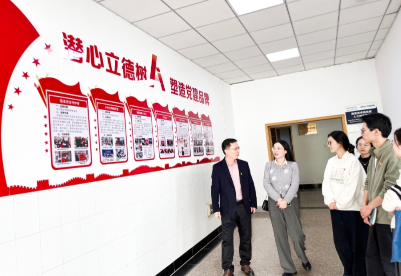 園區黨員代表在周主任和王院長的陪同下參觀了學校校史館,深入了解了商貿學院的創立背景、發展歷程、教育教學成果以及社會影響力等方面的內容,校史館充分展現了學校的辦學理念、悠久的歷史積淀和豐富的文化底蘊。隨后參觀了信息與人工智能學院教學樓和教學設施,了解了學院的榮譽歷程、師資團隊以及黨支部多種多樣的黨建活動。