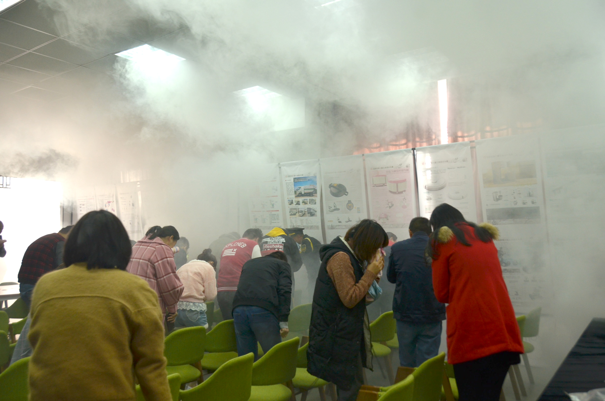 隨后,在室內模擬了火災發生時的逃生演練,使全體人員了解和掌握如何識別危險、如何采取必要的應急措施、如何疏散人群等基本操作,一旦發生事故,懂得應該做什么、能夠做什么、如何去做等。在演練開始時,白教官為員工們講解及示范如何正確使用滅火器,大家在理解了使用方法后,克服內心恐懼后,對油桶火進行撲滅,體驗了滅火過程。